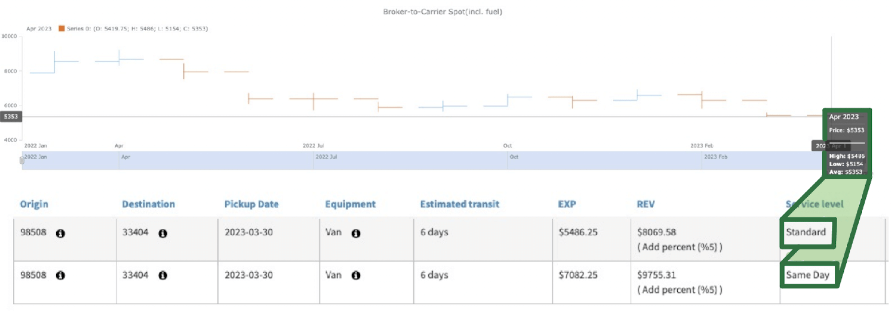 Get comprehensive historical and forecast data on new lanes from your customer, plus insights into carriers active on those lanes.