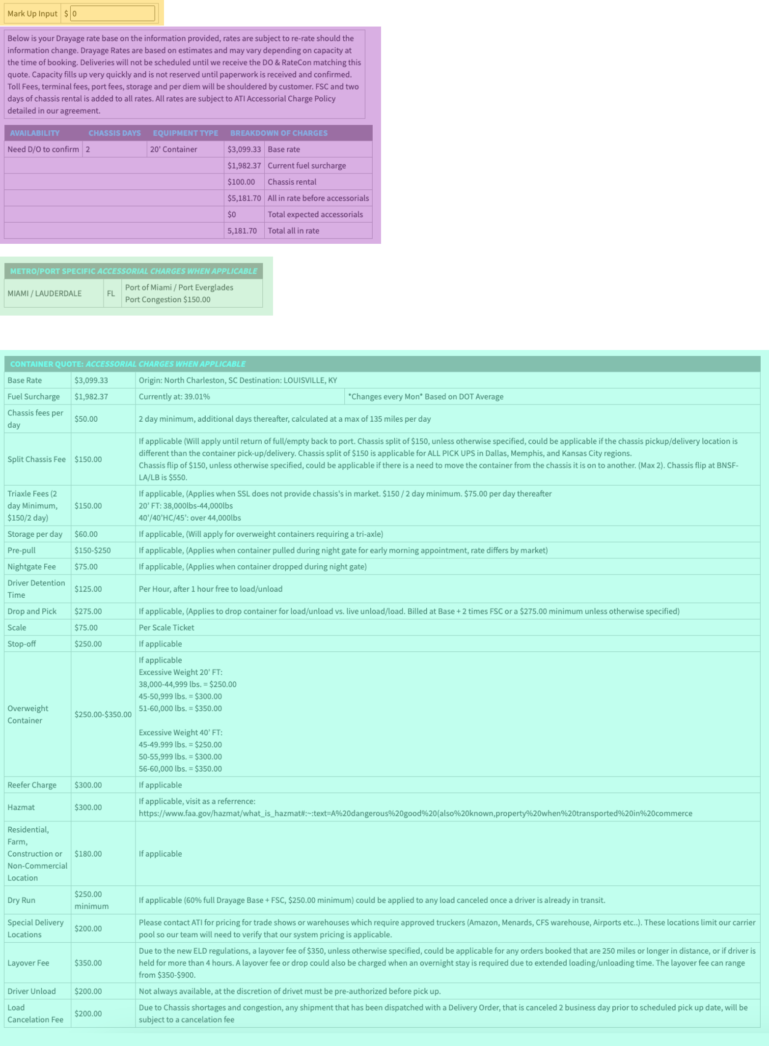 - Full Accessorial Break-Down with Detailed Explanation so that You can Clearly Communicate Charges Applicability to Your Customer